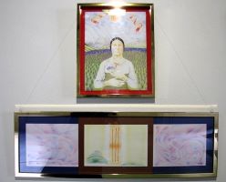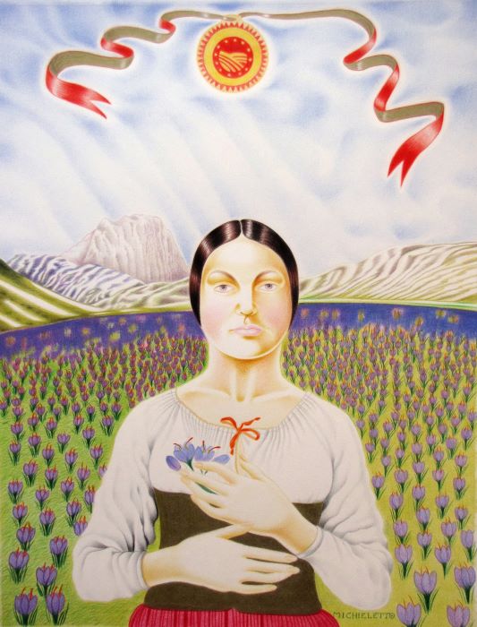Michieletto da Lanuvio, Il colore che germoglia pastelli e oro su carta, cm 42x30 Dittico con Primo elemento verticale pastelli su carta, cm 90x25 Dittico con Secondo elemento orizzontale ESPOSIZIONI 2022 - Ex-Cartiera Latina, Roma per Lo zafferano: l'oro che germoglia, | |