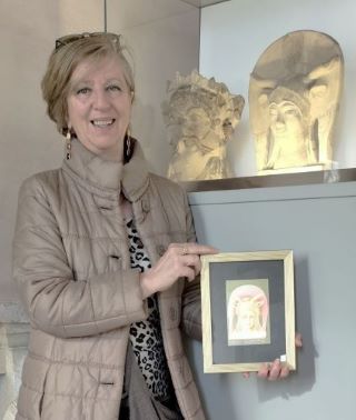 Michieletto da Lanuvio, Iuno Sispita (divinitā lanuvina) pastelli e oro su carta, cm 15x10 ESPOSIZIONI 2022 - Studio Lab 138, Pavona per Posta dell'Arte II ed. Cartoline e Manifesti d'artista - Catalogo in galleria 2022 - Stazione di Castel Gandolfo, sede Pro Loco, per Posta dell'Arte II ed. Cartoline e Manifesti d'artista, opera selezionata Foto 1-4. Pavona, Castel Gandolfo. Plance Comunali urbane, Posta dell'Arte II ed. Cartoline e Manifesti d'artista, manifesti stradali Foto 5. Roma, Museo Museo di Villa Poniatosky, antefissa in terracotta dal tempio della Mater Matuta di Satricum (480 a.C.) ispirata alla Giunone Sospita di Lanuvium | ||